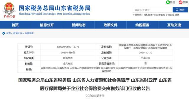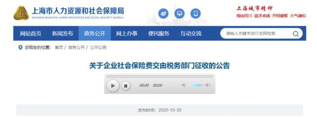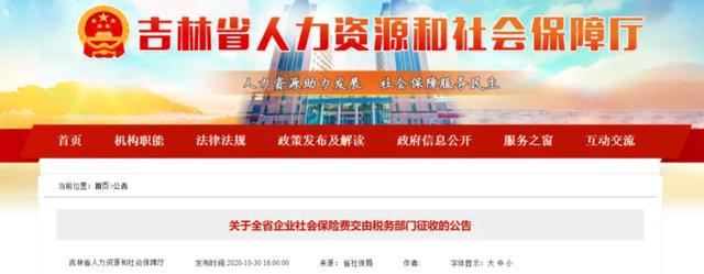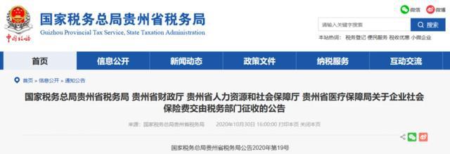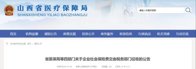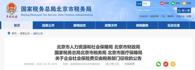 10月30日 北京、上海、山東、山西、湖南、四川、貴州、吉林、江西等地同時(shí)發(fā)布了《關(guān)于企業(yè)社會(huì)保險(xiǎn)費(fèi)交由稅務(wù)部門征收的公告》的通知。