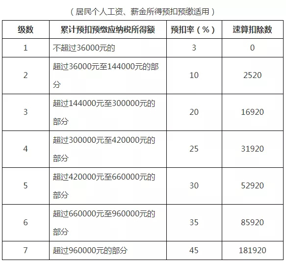 03 個稅最新最全的稅率表